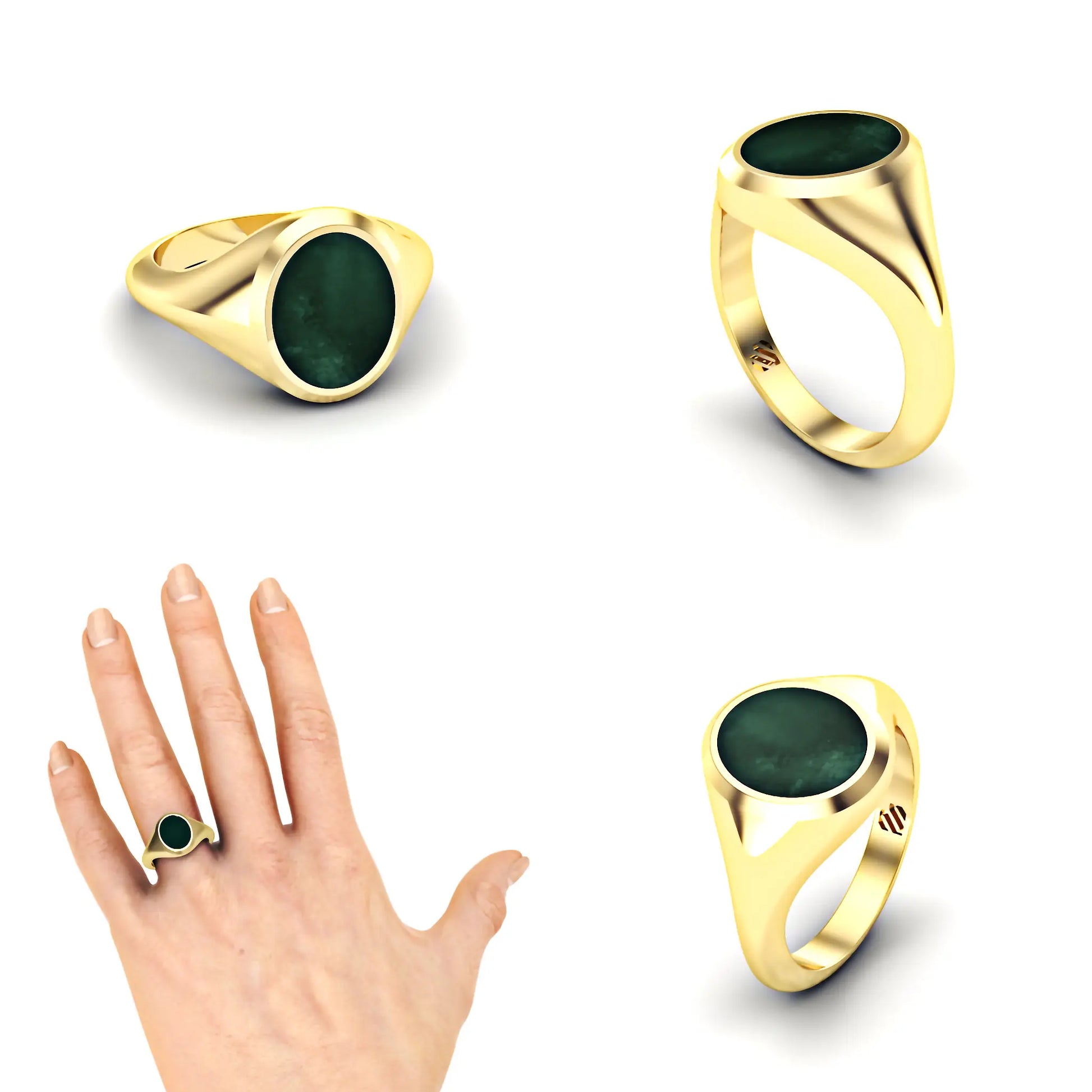 Een erfstuk in de maak. Deze tijdloze ovale heren zegelring, met robuuste constructie en opvallende heliotroop(bloedsteen), is ontworpen om generaties te trotseren. Beschikbaar in diverse kopmaten, biedt deze ring de mogelijkheid tot een steengravure met een verfijnd monogram of trotse familiewapen. Een uniek en duurzaam sieraad waar stijl en erfgoed naadloos samenkomen.