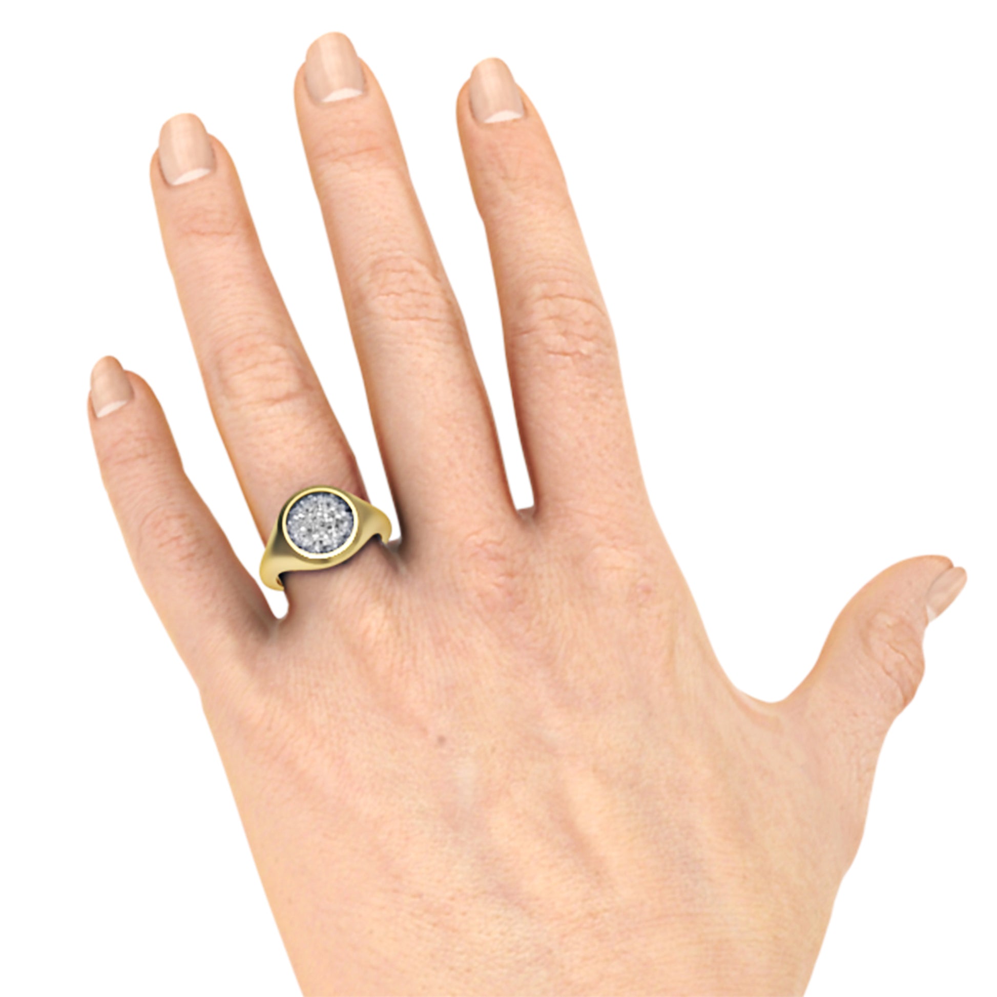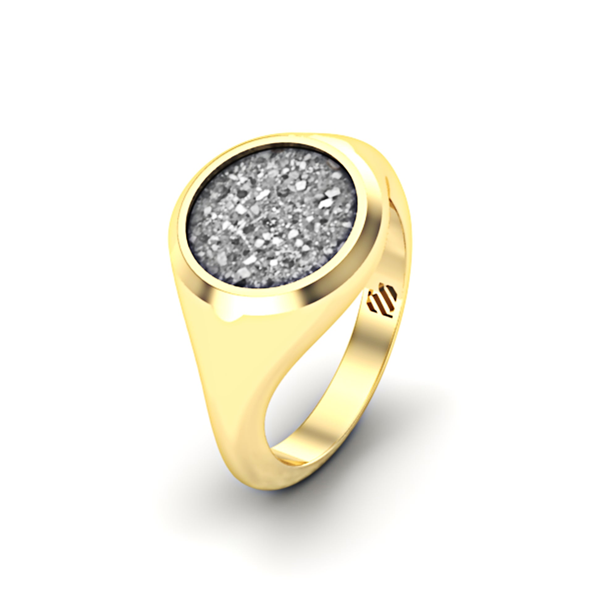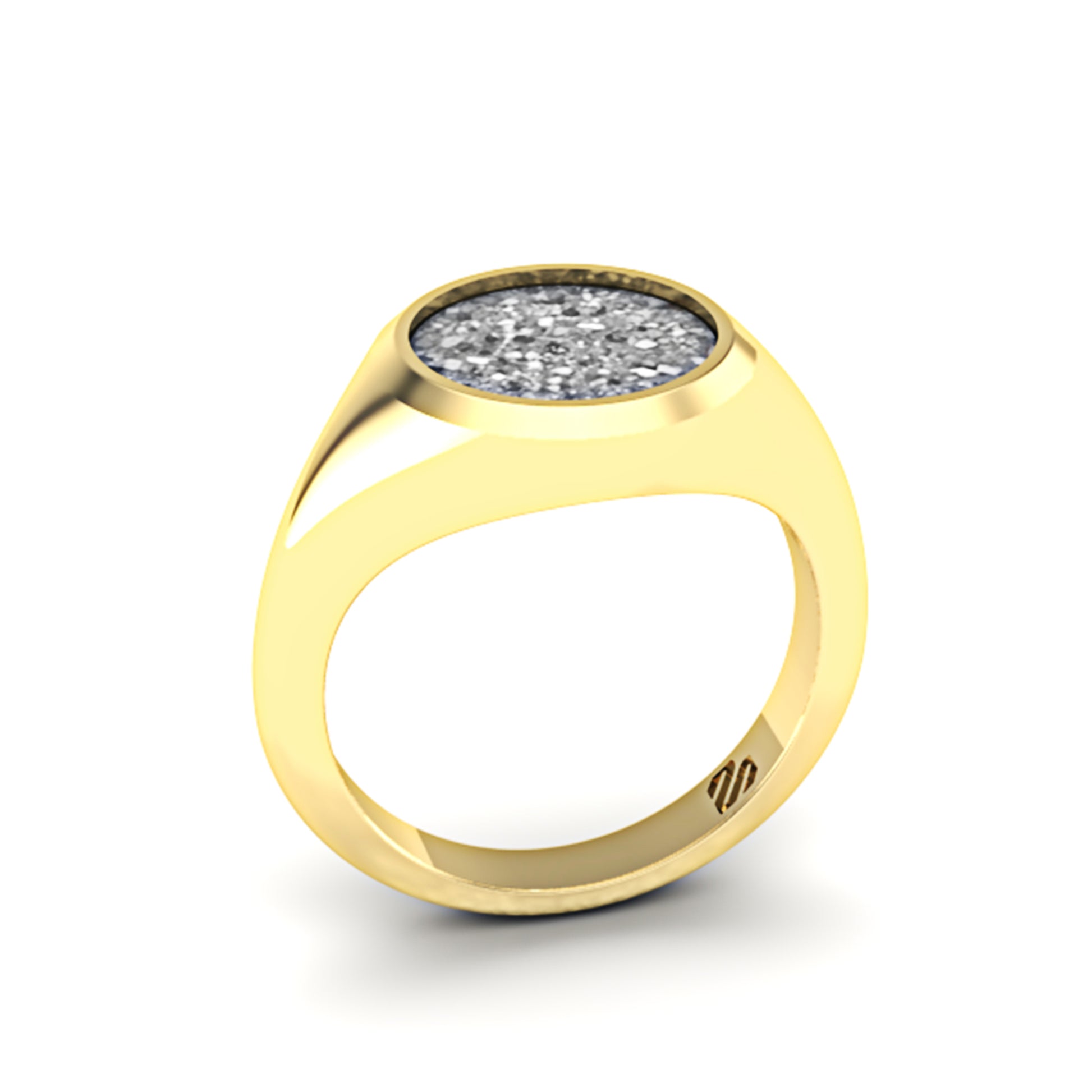 Verken onze prachtige ronde zegelring, waarin de herinnering aan een dierbare is verweven met hars en as. De hars, verkrijgbaar in diverse kleuropties, biedt de keuze tussen een ondoorzichtige, opaak afwerking of een transparante variant. Deze ring is meer dan slechts een sieraad; het is een teder eerbetoon aan degenen die we koesteren, met persoonlijke kleuraccenten die de herinnering op een unieke manier tot leven brengen.